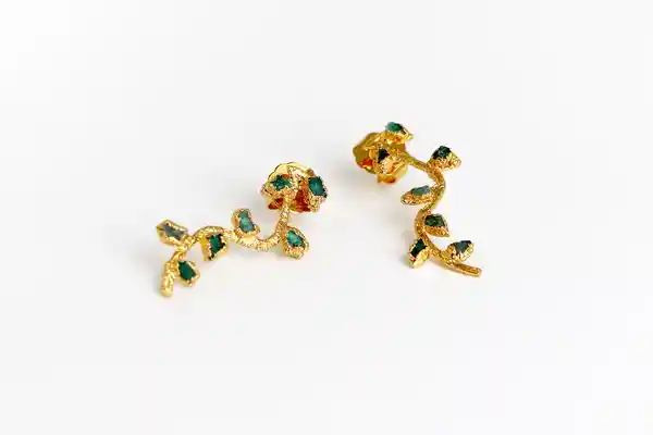 Aretes Electro Formados en Bronce Con Baño en Oro de 24 Kilates, Las Piedras Son Esmeraldas Naturales.