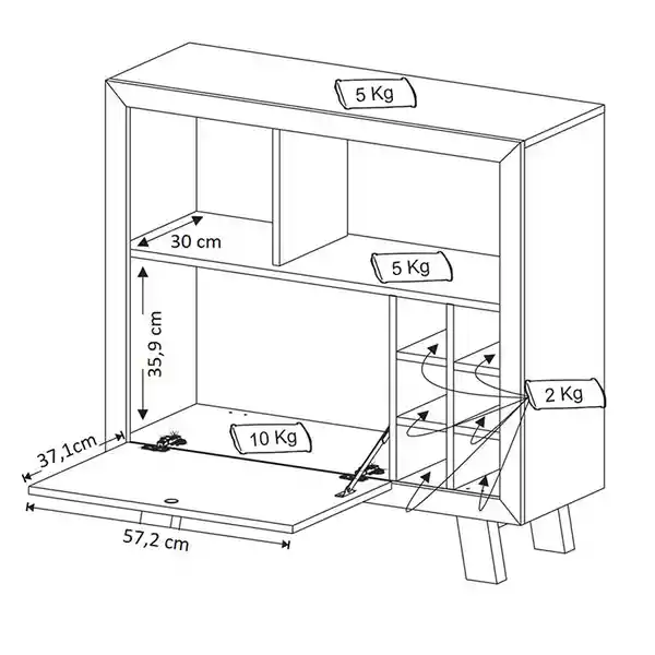 El Bar Madrid es un Mueble Moderno de Fácil Armado Que va Bien Con Cualquier Tipo de Decoración. Cuenta Con Tres Entrepaños, Uno de Ellos Con Puerta Abatible; Almacenamiento Para Seis Botellas y Soporte Metálico Para Copas. Ha Sido Producido Con Aglomerado de Madera y su Acabado en Melamina Garantiza Mayor Resistencia y Durabilidad. Con Sus Productos, Muebles 2020 Quiere Generar Ideas Para Darle Una Nueva Vida a Los Hogares. Cada Mueble es Una Mezcla de Creatividad, Diseño, Funcionalidad y Mucha Dedicación. Largo: 90 cm Alto: 87,5 cm Profundo: 31,5 cm Peso Recomendado: 5 Kg en Cada Repisa y 2 Kg en Cada Nicho Espesor Mdp: 15 mm Incluye: Cuatro (4) Patas en Mdp Soporte Metálico Para 6 Copas Tres (3) Compartimientos Seis (6) Espacios Para Botellas Una (1) Puerta Retráctil Kit de Herrajes Manual de Armado no Incluye: Accesorios la Garantía Aplica Para Defectos de Fabricación Por 1 Año. Producto Ambientado, no Incluye Accesorios. El Color de la Imagen es de Referencia y Puede Tener Variaciones en el Producto Real. Se Recomienda Que el Producto Sea Armado Por un Experto, o en su Defecto Que se Usen Las Herramientas Adecuadas, Según lo Establecido en el Manual de Armado. Si el Cliente Decide Armar él Mismo el Mueble, en Caso de Daño Por Una Instalación Indebida, o no Tomando en Cuenta Las Instrucciones Señaladas en el Documento de Instrucciones de Armado, Deberá Cubrir el Costo de Reparación.