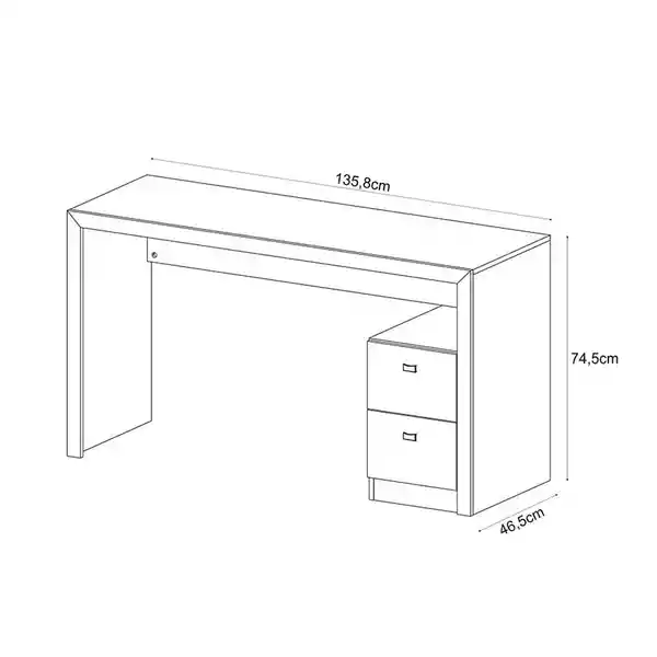 El Escritorio Santorini Cuenta Con Dos Cajones en Los Que se Pueden Organizar Diferentes Implementos de Trabajo. Es un Mueble de Fácil Armado Que Hará Cualquier Espacio de Trabajo un Lugar Cómodo y Productivo. Ha Sido Producido Con Aglomerado de Madera y su Acabado en Melamina Garantiza Mayor Resistencia y Durabilidad. Con Sus Productos, Muebles 2020 Quiere Generar Ideas Para Darle Una Nueva Vida a Los Hogares. Cada Mueble es Una Mezcla de Creatividad, Diseño, Funcionalidad y Mucha Dedicación. Largo: 135,8 cm Alto: 74,5 cm Profundo: 46,5 cm Peso Neto: 26,20 Kg Peso Recomendado 15 Kg en la Tapa y 3 Kg en Cada Cajón Estructura Mdp 15 mm Acabado en Melamina Incluye: Dos (2) Cajones, Manijas en Pvc Cromado y Rieles Metálicos Kit de Herrajes Manual de Armado no Incluye: Accesorios Producto Ambientado, no Incluye Accesorios. El Color de la Imagen es de Referencia y Puede Tener Variaciones en el Producto Real. Se Recomienda Que el Producto Sea Armado Por un Experto, o en su Defecto Que se Usen Las Herramientas Adecuadas, Según lo Establecido en el Manual de Armado. Si el Cliente Decide Armar él Mismo el Mueble, en Caso de Daño Por Una Instalación Indebida, o no Tomando en Cuenta Las Instrucciones Señaladas en el Documento de Instrucciones de Armado, Deberá Cubrir el Costo de Reparación.