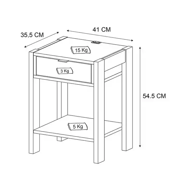 La Mesa de Noche Auxiliar Juana es un Mueble de Fácil Armado de Color Blanco/Nogal Que Además de Ser Moderno es Funcional. Este Mueble Cuenta Con un Cajón y un Amplio Espacio Inferior Que le Permitirá Acomodar Los Elementos Que Desee, Además de Optimizar Espacios en su Hogar. La Mesa de Noche Juana Tiene Una Excelente Calidad, Diseño y Funcionalidad. Esta Mesa de Noche ha Sido Producida Con Aglomerado de Madera y su Acabado en Melamina Garantiza Mayor Resistencia y Durabilidad. Con Sus Productos, Muebles 2020 Quiere Generar Ideas Para Darle Una Nueva Vida a Los Hogares. Cada Mueble es Una Mezcla de Creatividad, Diseño, Funcionalidad y Mucha Dedicación. Alto: 54,5 cm Largo: 41 cm Profundo: 35,5 cm Peso Recomendado: 3 Kg Espesor Mdf: 15 mm Acabado en Melamina Incluye: Manual de Armado un (1) Cajón no Incluye: Accesorios Producto Ambientado, no Incluye Accesorios. El Color de la Imagen es de Referencia y Puede Tener Variaciones en el Producto Real. Se Recomienda Que el Producto Sea Armado Por un Experto, o en su Defecto Que se Usen Las Herramientas Adecuadas, Según lo Establecido en el Manual de Armado. Si el Cliente Decide Armar él Mismo el Mueble, en Caso de Daño Por Una Instalación Indebida, o no Tomando en Cuenta Las Instrucciones Señaladas en el Documento de Instrucciones de Armado, Deberá Cubrir el Costo de Reparación.