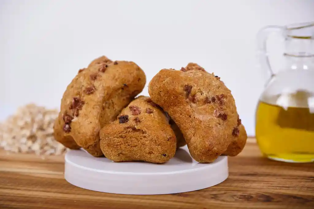¡Horneados con textura semiblanda y en forma de hueso! Para los amantes de la carne! Esta delicia esta decorada con pedacitos de pulpa de carne encima, tu peludo quedará ¡LOCO DE FELICIDAD!
