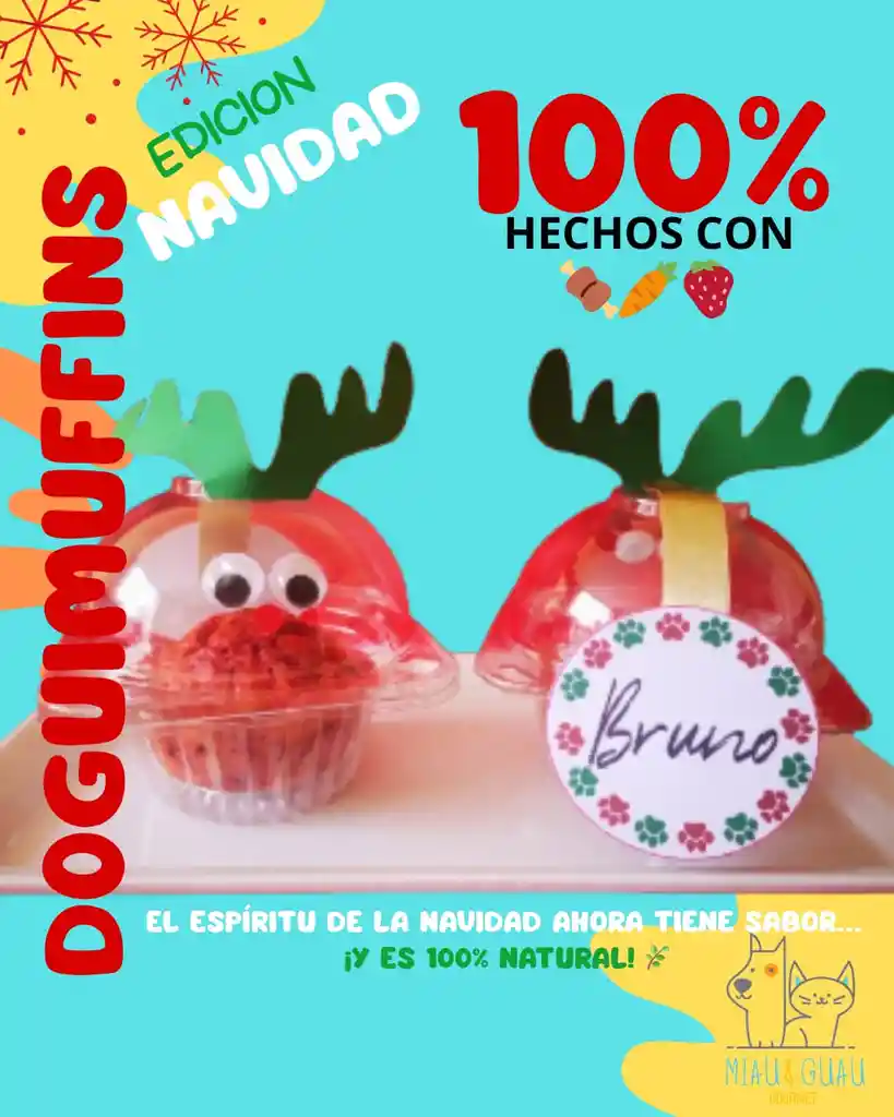 🧁 DoguiMuffins Miau & Guau Gourmet 🐶💚 Deliciosos muffins naturales para perritos, elaborados con pollo, zanahoria 🥕 y fresa 🍓, combinando sabor y nutrición en cada mordisco. Suaves, esponjosos y 100% naturales, ideales para celebraciones, consentir o premiar a tu peludo con un detalle lleno de amor. ✅ Ricos en proteínas y vitaminas ✅ Sin azúcar, colorantes ni conservantes ✅ Aptos para todas las razas y edades ✅ Hechos artesanalmente con ingredientes frescos 🎄 DoguiMuffins edición navideña – el sabor más dulce de esta temporada, hecho con amor para tu peludo.