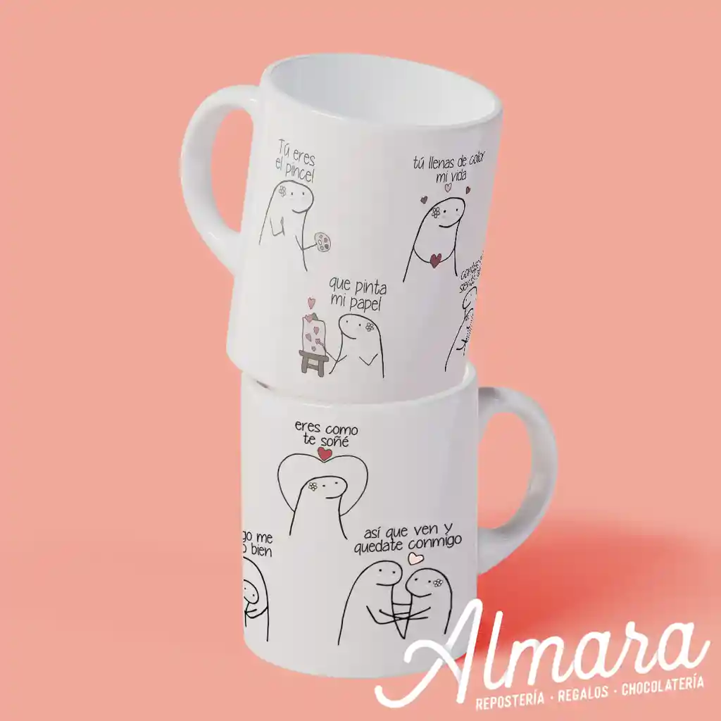 Regalos románticos Mug 11 onzas estampado de la temática my bebito fiu fiu Caja de regalo decorada con cinta y aleluyas 3d Almara Anchetas caja,desayunos, perdón, sorpresas