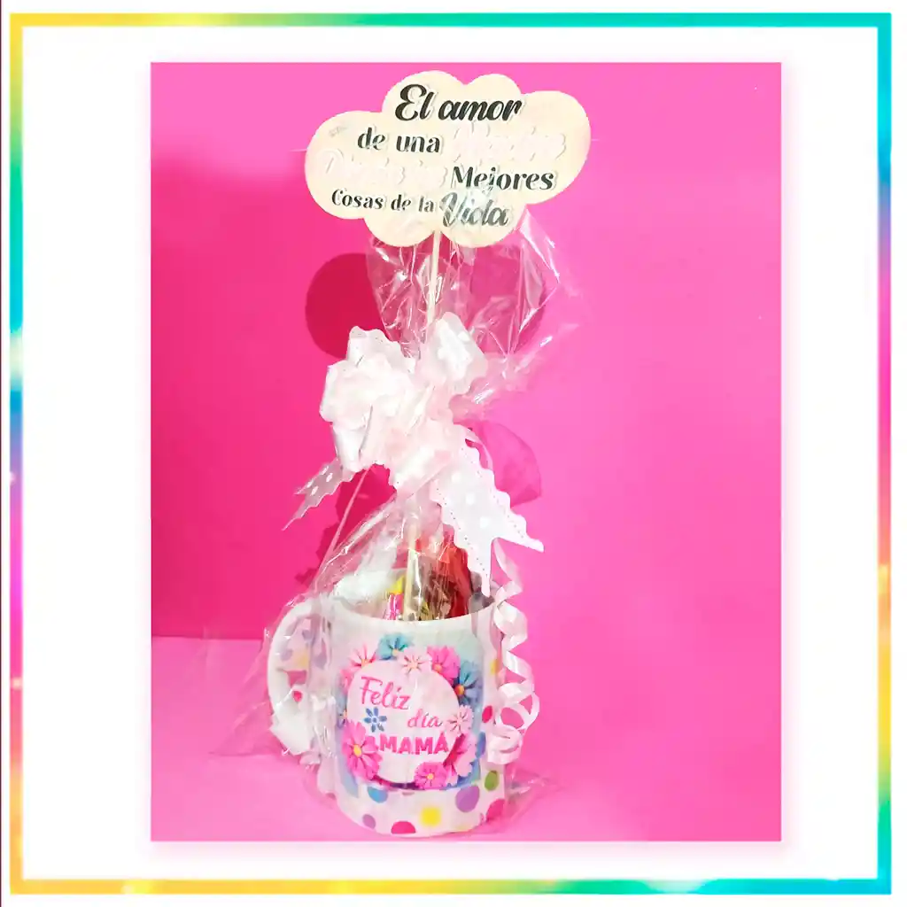 MUG CON DULCES, PIN Y MOÑO DIA DE LA MADRE LISTO PARA REGALAR