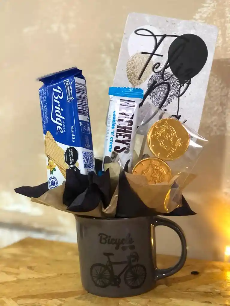 Mug eko para hombre 2 contiene: Galletas Bridge, hershey´s, monedas de chocolate, tarjeta y pocillo decorado ( El pocillo puede variar según la disponibilidad de la tienda) Ideal para día del hombre Ideal para el día del padre día de la madre día de la secretaria día del abogado cumpleaños aniversario día del ingeniero