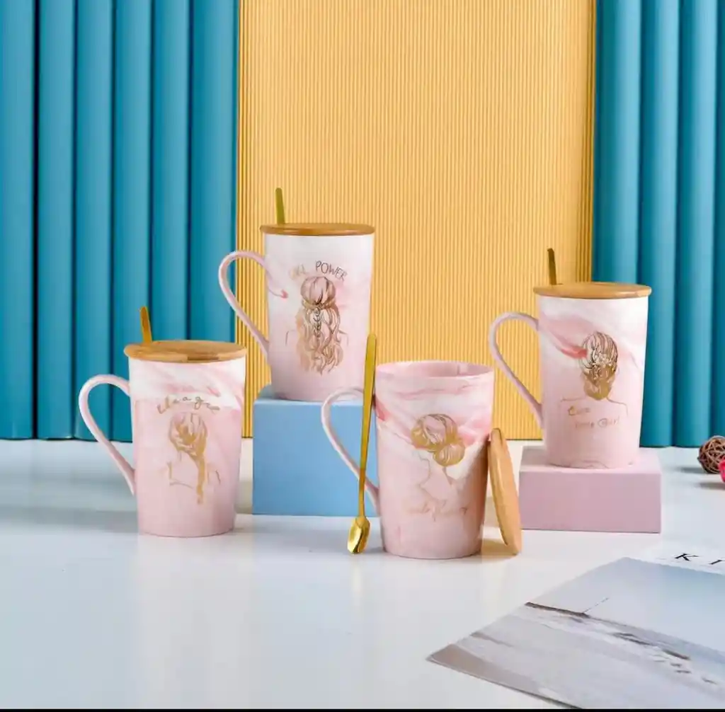 MUG MUÑECA INCLUYE TAPA EN MADERA Y CUCHARITA