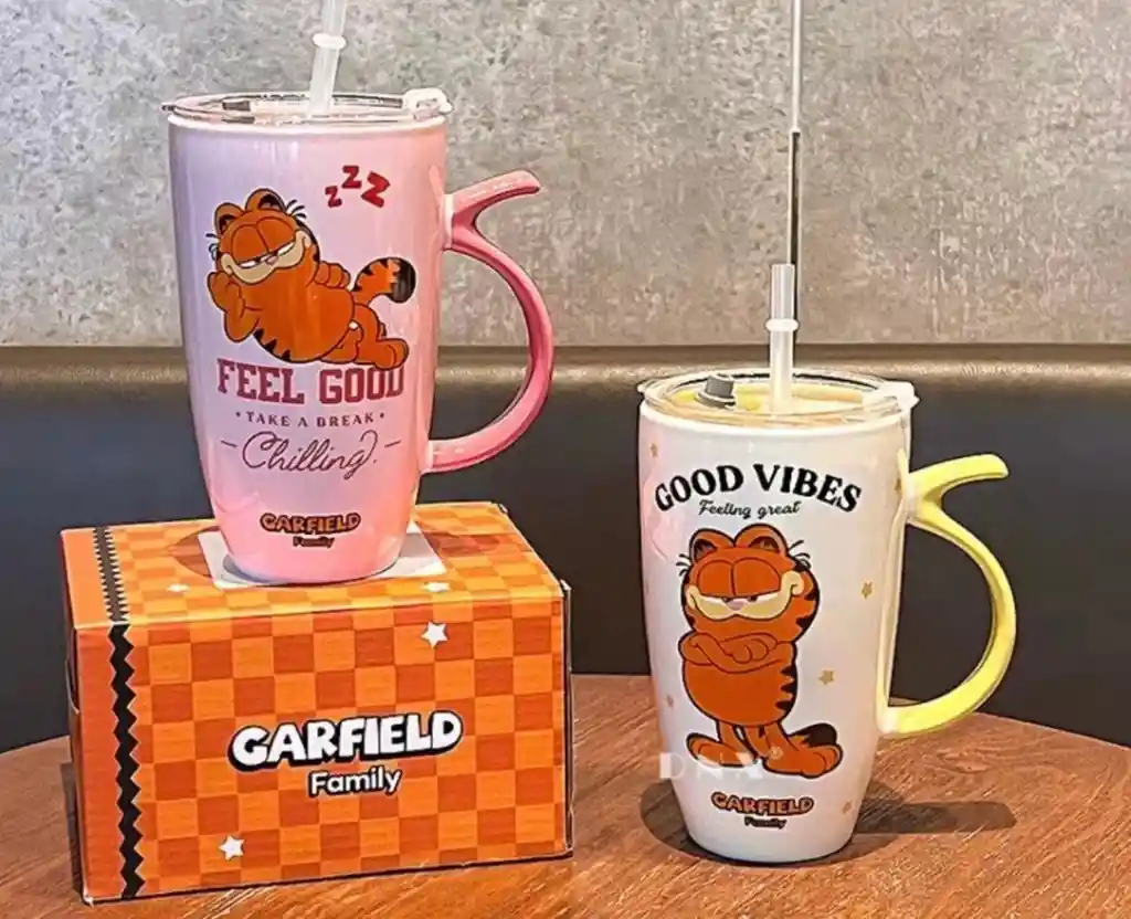 Mug O Taza Garfield Amarillo Con Pitillo