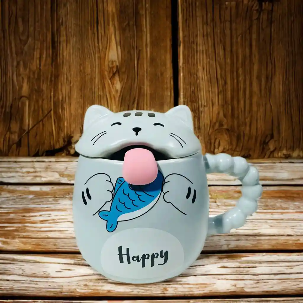 Mug o taza gatito sacando la lengua gris