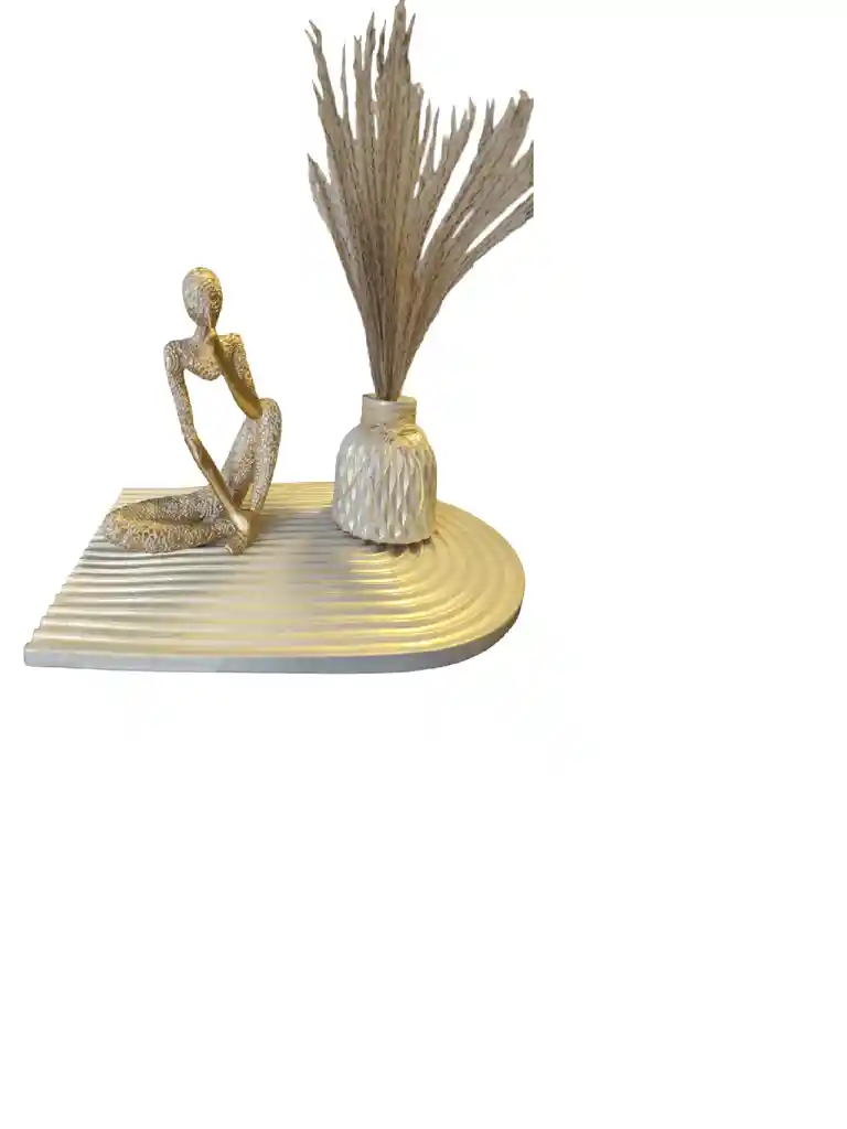mujer del sentido con base planta terminados en resina su color es perla con color oro