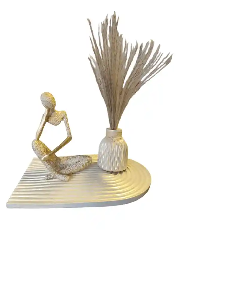 hermosa mujer escucha con base florero con plumas