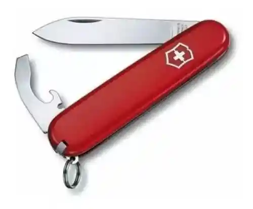Somos los distribuidores Oficiales para Colombia de la Original Navaja Suiza. Disponible para entrega inmediata. Peso 33 g Tamaño: 84 mm 1. hoja grande 2. destapador 3. abrelatas 4. destornillador 5 mm 5. pela cables 6. anilla 7. palillo de dientes 8. pinzas