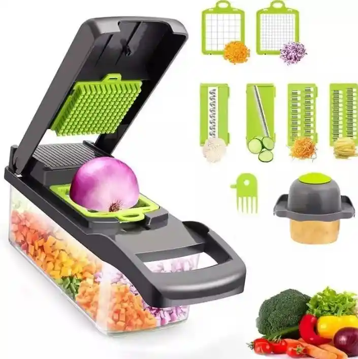 Picadora de verduras multifunción 8 en 1 es perfecta para preparar cebollas, ensaladas, verduras y más. La cortadora de verduras cubrirá todas tus necesidades. Desde los materiales del producto hasta la calidad del producto terminado, sin BPA, plástico ABS endurecido de grado alimenticio y acero inoxidable 304. Aspecto compacto para ahorrar espacio, que contiene mucha comida.