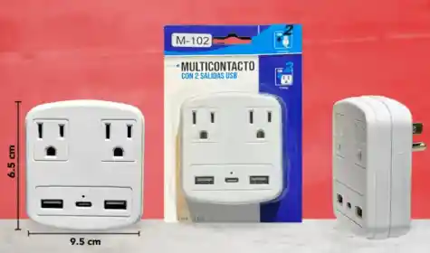 Energía inteligente para todos tus dispositivos. Conecta más, carga más y olvídate del desorden. * 2 tomas de corriente + 2 puertos USB para cargar y alimentar varios dispositivos al mismo tiempo. * Diseño compacto y seguro, ideal para el hogar, oficina o viajes. * Puertos USB de carga rápida, perfectos para celulares, tablets o accesorios electrónicos. * Material resistente y duradero, con enchufe estable y protección contra sobrecargas.