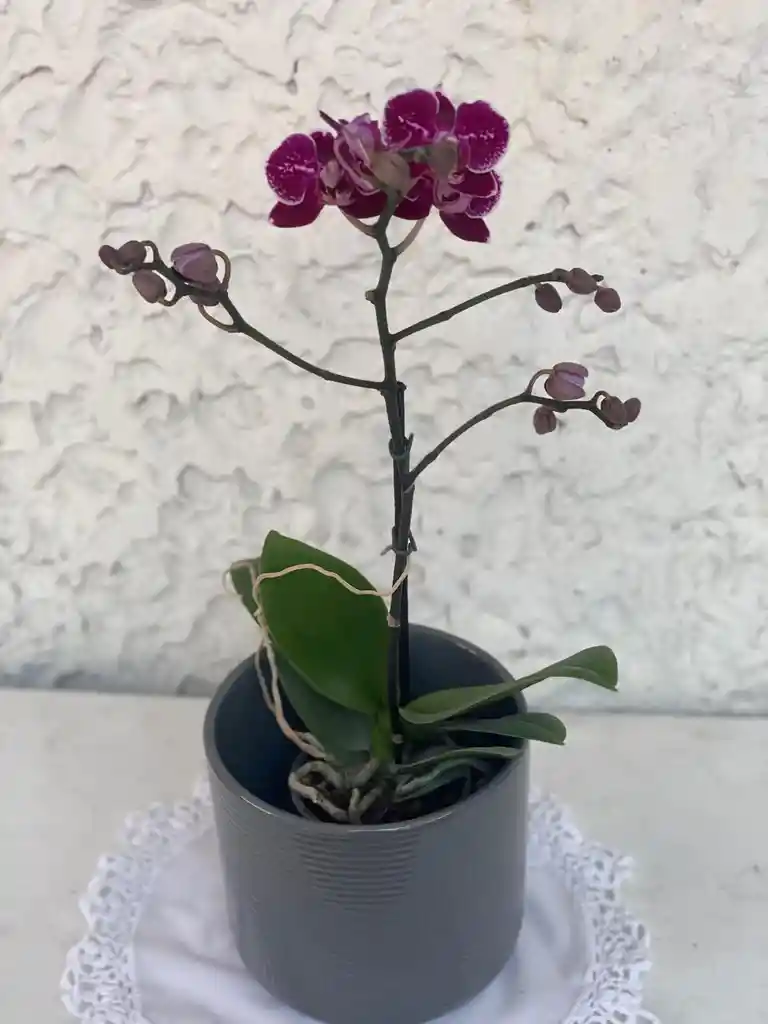 ORQUIDA PHALENOSIS MULTIFLORA DE 1 VARITA ARREGLADA CON TELA O PAPEL COEANO DECORADA CON CINTA