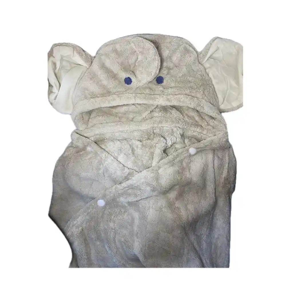Multifuncional de elefante gris Usos: toalla, cobija y salida de baño Material: 80% Poliéster 20% Nylon Medidas: 125 Cm X 80 Cm