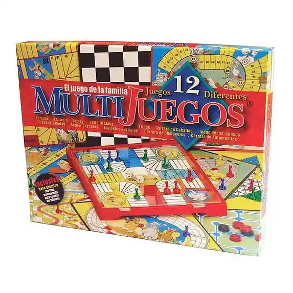 Empaque de regalo sin costo adicional, escríbenos al finalizar la compra. Ahora tienes diversión garantizada con el JUEGO de MESA x 12 MULTIJUEGOS, gran variedad de juegos disponibles como: Parqués Escalera Damas Trique Estrella China Carrera de Caballos Juego de los Gansos Juego de Fábulas Corner Checkers Los Gatos y el Ratón Carrera de Obstáculos Carrera de Automóviles