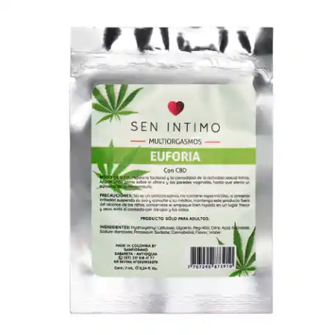 MULTIORGASMOS CALIENTE - EUFORIA HEMP - CANABIS - MARCA SEN ÍNTIMO - 7 ML SACHET ¡Renueva tu relación con sensaciones intensas! Con Extracto de cannabis , te permitirá mejorar la lubricación y experimentar intensas sensaciones de placer. INGREDIENTES: Incluye Aceite de cáñamo y extractos de ginseng, damiana, cannabis, raíz maca, aloe vera y l-arginina. CONTENIDO: 7 ml. USO: Aplica en las zonas íntimas o preservativo de 10 a 15 minutos antes de la relación, su suave textura hará de tu encuentro un momento placentero. Recomendado para sexo oral y anal.