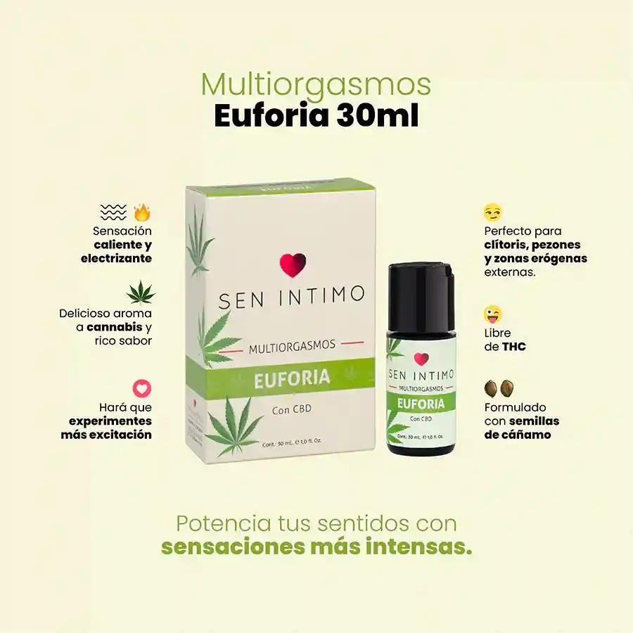 ¿Y si te dijera que hay una fórmula que puede multiplicar tus orgasmos intensificar cada caricia y dejarte temblando de placer? No es magia. Es ciencia deseo y naturaleza… en una sola gota. 💚 Con extracto de Cannabis Sativa (CBD): Relaja suaviza lubrica y enciende. Dile adiós a la incomodidad y hola al placer consciente. ⚡ Efecto eléctrico + sensación envolvente: Ese cosquilleo delicioso que sube vibra y se queda… justo donde lo necesitas. 🔥 Diseñado para orgasmos múltiples y profundos: No uno. No dos. Los que tu cuerpo quiera pedir. 🖤 Perfecto para clítoris pezones y zonas erógenas externas. También puede usarse durante la penetración o el sexo oral potenciando cada contacto con una mezcla irresistible de suavidad y estímulo. 🎯 Ideal para mujeres que no se conforman con lo “normalito”. Tú no viniste a este mundo a fingir. Viniste a sentir. A disfrutar. A explotar. 👉 ¿Lista para vivir la Euforia en tu cuerpo? Cómpralo hoy y convierte tu cama en tu lugar favorito del planeta. Modo de uso: Aplica unas gotas y masajea suavemente en movimientos circulares sobre el clítoris y los labios vaginales. Su fórmula única intensifica las sensaciones mejora la lubricación natural y se adapta perfectamente al sexo oral o a la penetración brindando una experiencia sensorial única. Renueva tus momentos íntimos y sumérgete en una experiencia de placer excepcional con Multiorgasmos Euforia Sen Íntimo. ¡Compra ahora y disfruta de sensaciones eufóricas en cada encuentro!