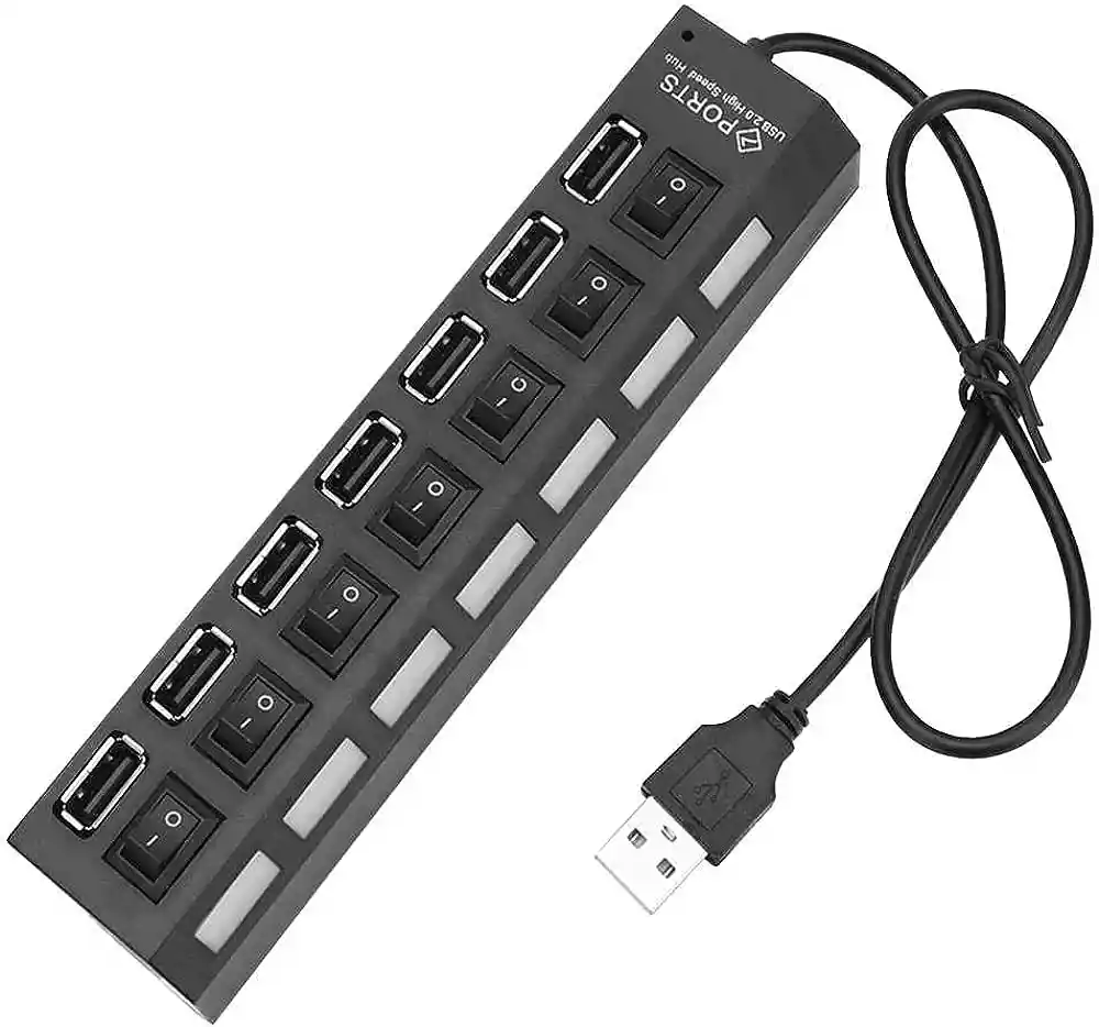 Divisor USB multipuerto, 7 puertos USB 2.0 Hub con interruptor individual de alta velocidad de encendido/apagado con LED compatible con todos los dispositivos USB.