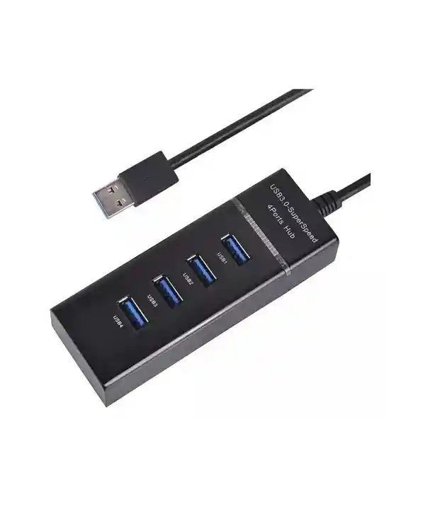 Multipuerto Usb X 4 Puertos 3.0 Interface de USB 1.0/1.1/2.0/3.0 Velocidad máxima de transferencia de 5 Gbps Largo del Cable 26 Cms aprox Sistemas operativos soportados para Windows XP/Vista/Win7/8/10/Linux/MacOS Soporta discos de hasta 1 Tera. Plug and play (no requiere instalación de drivers/controladores). Color en Negro y blanco. Luz indicadora de conexión. Capacidad de 4 puertos. Funciona con todos los portátiles y PC de escritorio. Largo cable: 10 cms. Dimensiones del producto en centímetros alto 10 ancho 4 largo 2 Recomendado para: USB, Ventiladores, Smartphone, Impresoras, Scanner, Tablets y celulares.