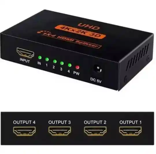 Descripción del producto: El Multipuertos HDMI LJ-16 Splitter 1*4 permite distribuir una señal HDMI a cuatro salidas simultáneas, ofreciendo video en resolución hasta 4K a 60Hz con un ancho de banda de 4,95 GHz. Compatible con HDCP, este divisor garantiza una transmisión estable y de alta calidad, ideal para televisores, consolas de juegos, proyectores y más. Su diseño compacto y eficiente permite disfrutar contenido en varias pantallas al mismo tiempo sin pérdida de señal. 🔹 Características: Divisor HDMI 1 entrada a 4 salidas Resolución máxima: 3840x2160 (4K) Ancho de banda de video: Hasta 4,95 GHz Rango de frecuencia vertical: 60/85 Hz Cumple con HDCP LED indicador por puerto: 4/6 Consumo máximo de energía: 5 W Versión HDMI: 1.4 Compatible con TV, proyectores y consolas de juegos Transmisión de señal estable y de alta calidad