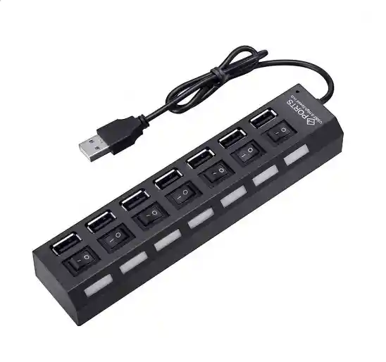 7 puertos USB2.0, plug and play, intercambio en caliente No se requiere controlador de dispositivo para la instalación del concentrador Protección de corriente incorporada El conector USB a CC (tamaño de 3,5 mm) se puede utilizar como una mejora actual Soporte USB 2.0, hacia atrás con USB1.1 Admite tasas de transferencia de datos: USB 2.0 de alta velocidad (480 Mbps), USB 2.0 de alta velocidad (12 Mbps) y USB 2.0 de baja velocidad (1.5 Mbps)