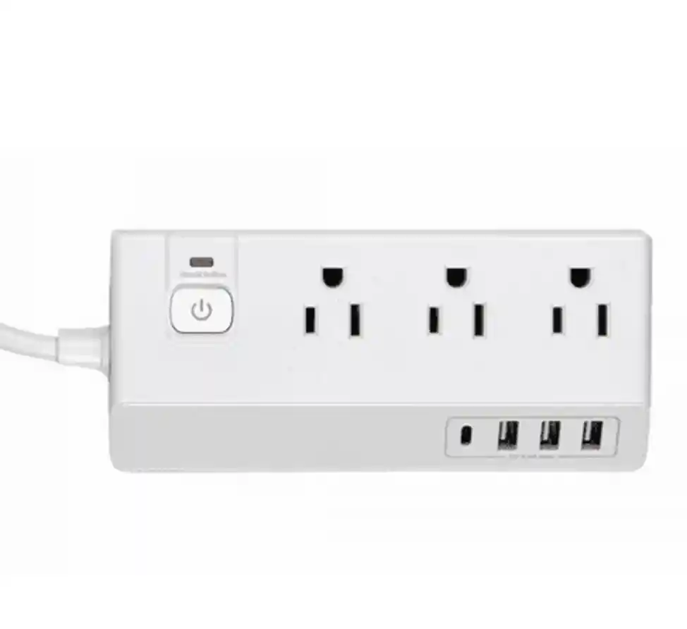 Multitoma 3 A/C + 3 USB-A + 1 USB-C Características: Tomas de corriente: NEMA 5-15R (3) + USB A (3) + USB C (1). Protección integrada contra sobretensiones, cortocircuitos y sobrecargas (300J). Cable de alimentación de 1,5 metros con enchufe NEMA 5-15P. Interruptor principal de encendido/apagado. Interruptor de reinicio. Tensión de entrada (VAC): 110 ~ 240 (50/60Hz). Salida USB: 5V/3,4A (17W). Salida de CA: 125V/10A (1250W). Carcasa ignífuga. Dimensiones (en): 6,1 x 2,8 x 1,3.
