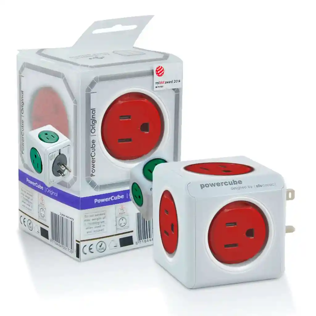 Puedes utilizarlo en computadores, fax, equipos de sonido, neveras, televisores, etc. 5 tomas de entrada. El PowerCube es un gran ahorrador de espacio, especialmente en las áreas donde se necesita un montón de aparatos enchufados: cocina, área de trabajo, taller u otro. Es fácil de cuidar, sólo, enchufe en cualquier toma e incluso llevar con usted cuando viaja. Gracias al diseño modular, incluso puede conectar varios enchufes juntos, haciendo varias combinaciones para adaptarse a su propósito, diseño o simplemente agregar un elemento a su escritorio. Ya no tendrá que tropezar con cables de extensión deslucidos o intentar atascar un enchufe entre otros dos. El PowerCube Original está diseñado de tal manera que puede conectar hasta 5 dispositivos, sin que ninguno de ellos se interponga el uno del otro. Cada lado del PowerCube puede proporcionar suficiente espacio para alimentar sus dispositivos cómodamente. ____________________________________________________ CARACTERÍSTICAS • Voltaje clasificado: 125V • Corriente Nominal: 15A • Potencia nominal: 1875W • Conectado a tierra • Aplicación: Residencial, Oficina, Propósito General • Estándar de calidad: Completamente CE, ROHS, Aprobado ETL • Toma de corriente: 5 • Dimensiones: 85 x 65 x 65 mm (L x A x P) • Peso: 173g ____________________________________________________ CONTENIDO DEL PAQUETE • Cubo de energía