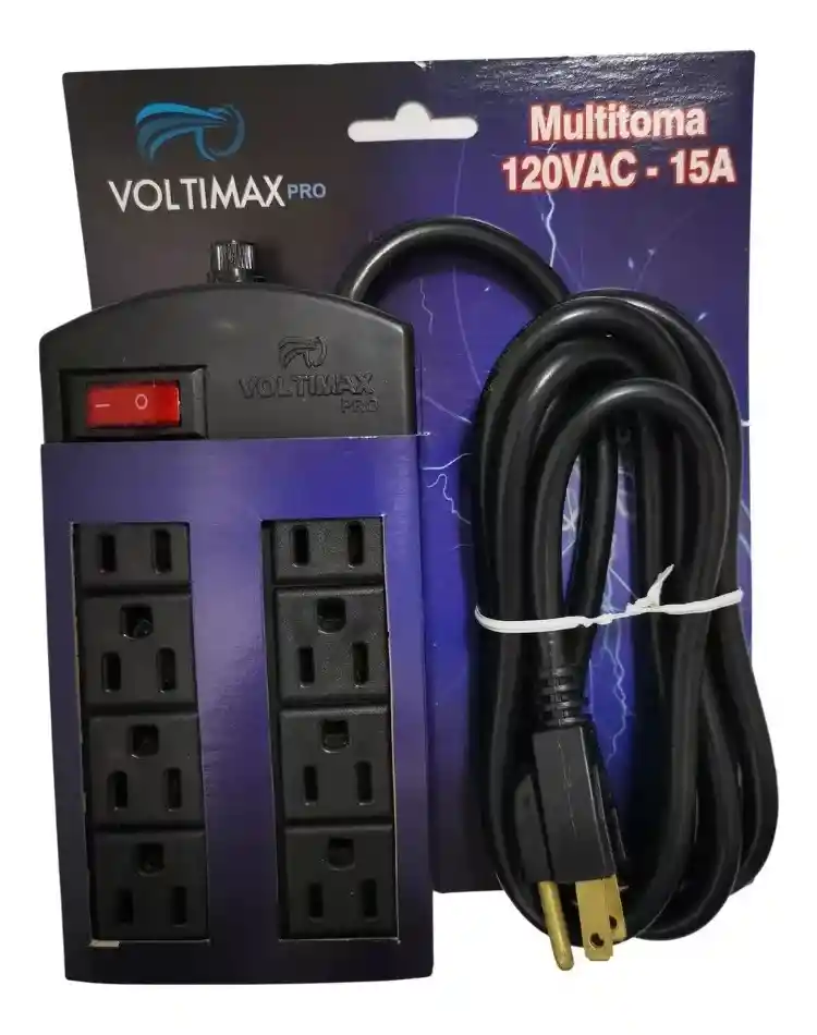 Multitoma VOLTIMAX PRO de 8 tomas es el ideal para que conectes o enchufes hasta 8 aparatos electrónicos a la vez. Viene con un LED que se encenderá cuando oprimas el switche de encendido. Ideal para equipos de Oficina, Video juegos, Impresoras, Modem, Decodificadores, teléfonos, etc. - Cable con polo a tierra - LED indicador de encendido - Switch de encendido y apagado - Color: negro - 8 tomas - Certificación Retie - 15a - 120v -1800w DISPOSITIVO RECOMENDADO PARA CELULARES, COMPUTADORES, TABLETS, NO SE RECOMIENDA PARA APARATOS CON MOTOR COMO CALENTADORES, JACUZZIS, SECADORAS, ETC.