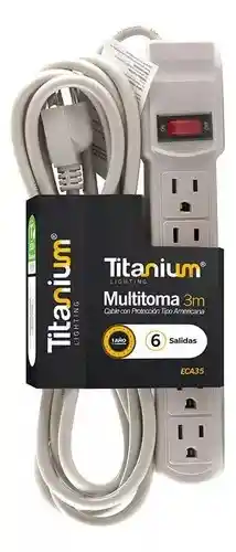 Multitoma de 6 salidas TITANIUM con cable de 3 metros con polo a tierra tipo Techman, Cuenta con proteccion contra sobrecargas de voltaje, para uso en interiores, residenciales, comerciales y oficina, atractivo diseño que armoniza con el interior. Tension: 127V Recuencia: 60Hz Corriente: 15A Potencia: 1800W Cable de alimentacion: Calibre 3x14 AWG Color: Biege Boton de encendido Tola: 6 X NEMA 5-15P (Polo a tierra) Temperatura de operacion: Maxima 50°C