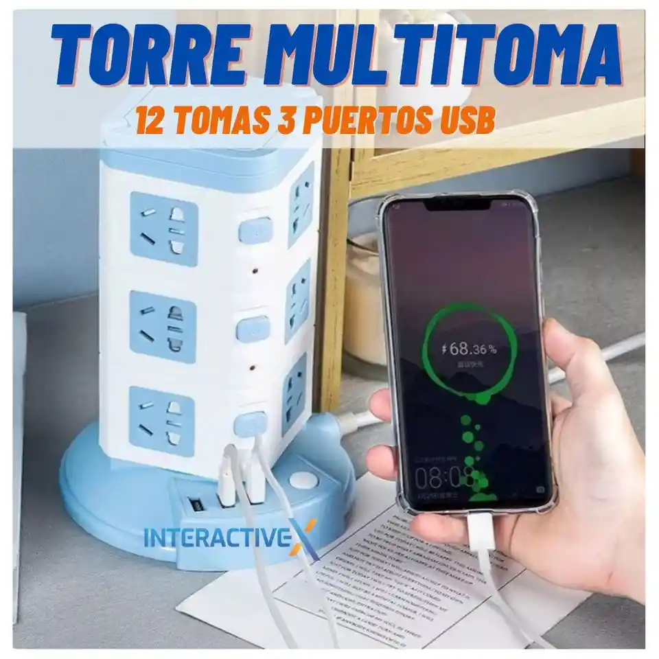 CARACTERÍSTICAS * Ofrece 12 tomas de corriente para conectar dispositivos electrónicos. * Incluye tres puertos USB para cargar dispositivos como teléfonos móviles, tabletas y otros dispositivos con cable USB. * Tiene un diseño vertical que facilita la conexión de dispositivos con enchufes voluminosos y transformadores de corriente. * Por lo general, cuenta con un interruptor para apagar o encender todos los dispositivos conectados de manera simultánea. * Puede incluir protección contra sobretensiones para proteger los dispositivos conectados en caso de picos de voltaje. * Viene con un cable de alimentación de cierta longitud para permitir una mayor flexibilidad en la ubicación de la multitoma. * Algunos modelos tienen indicadores LED que muestran el estado de alimentación y la presencia de protección contra sobretensiones. * A menudo, admite una variedad de enchufes y clavijas de diferentes tipos y tamaños. CARACTERISTICAS Material: Plástico. *Medidas: 14.5 cm x 20 cm *Tipo de enchufes: GB tipo I, GB tipo B, Estándar Americano tipo A y B, europeo tipo C, británico tipo G y sudafricano tipo M. *USB: 5V/2.1 A 17 W *Tipo de clavija: Tipo B. *Color: Blanco *Largo del cable: 183 cm