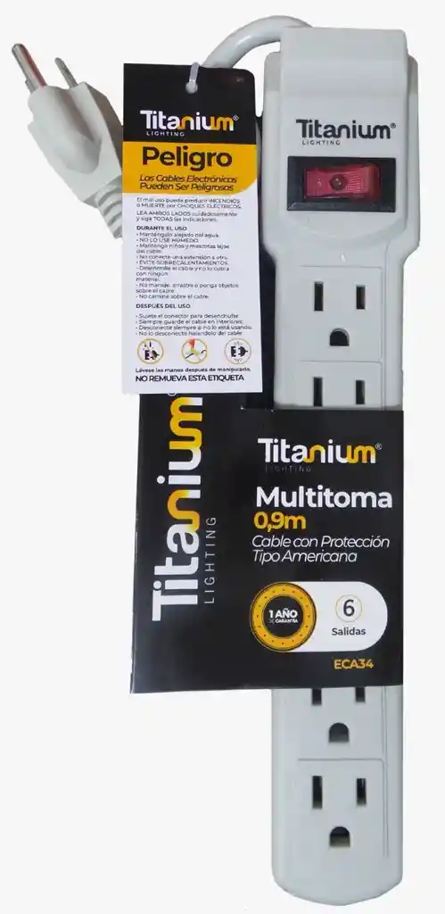 Multitoma de 6 salidas TITANIUM con cable de 0.9 metros con polo a tierra tipo Techman, Cuenta con proteccion contra sobrecargas de voltaje, para uso en interiores, residenciales, comercilaes y oficina, atrativo diseño que armoniza con el interior. Tension: 127V Frecuencias: 60 Hz Corriente: 15A Potencia: 1800W Cable de alimentacion: Calibre 3X14 AWG Color: Beige Boton de Encendido Toma: 6 X NEMA 5-15R (Polo a tierra) Temperatura de operacion: Maxima 50°C