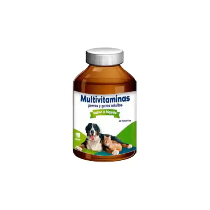 Multivitaminas perros y gatos adultos Tabletas Suplemento nutricional a base de vitaminas macrominerales, microminerales y oligoelementos para suministrar a perros y gatos adultos. Fuente de ácidos grasos no saturados para mantener la piel sana y un pelaje brillante. Con vitaminas liposolubles y del complejo B para ayudar a la producción de energía, evitar la anemia y aprovechar mejor los alimentos.