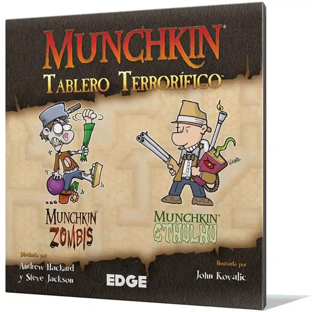Tipo de Juego: Expansión Tienes en las manos un tablero de juego para Munchkin Cthulhu y Munchkin Zombis, con una habitación para cada Nivel, y espacios para los mazos y las pilas de descarte, para saber de un vistazo quién va en cabeza y quién se está retrasando para comerse tu cerebro. Incluye dos marcadores de Masculino/Femenino en seis colores y marcadores a juego con Bonus especiales de juego para cada jugador. ¡Y además, también se incluyen ocho cartas totalmente nuevas, cuatro para Munchkin Cthulhu y cuatro para Munchkin Zombis!
