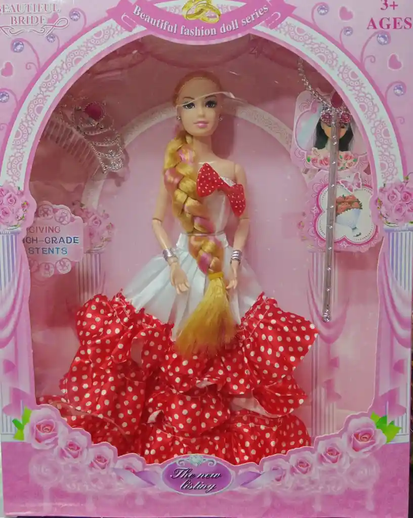 Muñeca princesa, accesorios: tiara, varita, cabello de colores