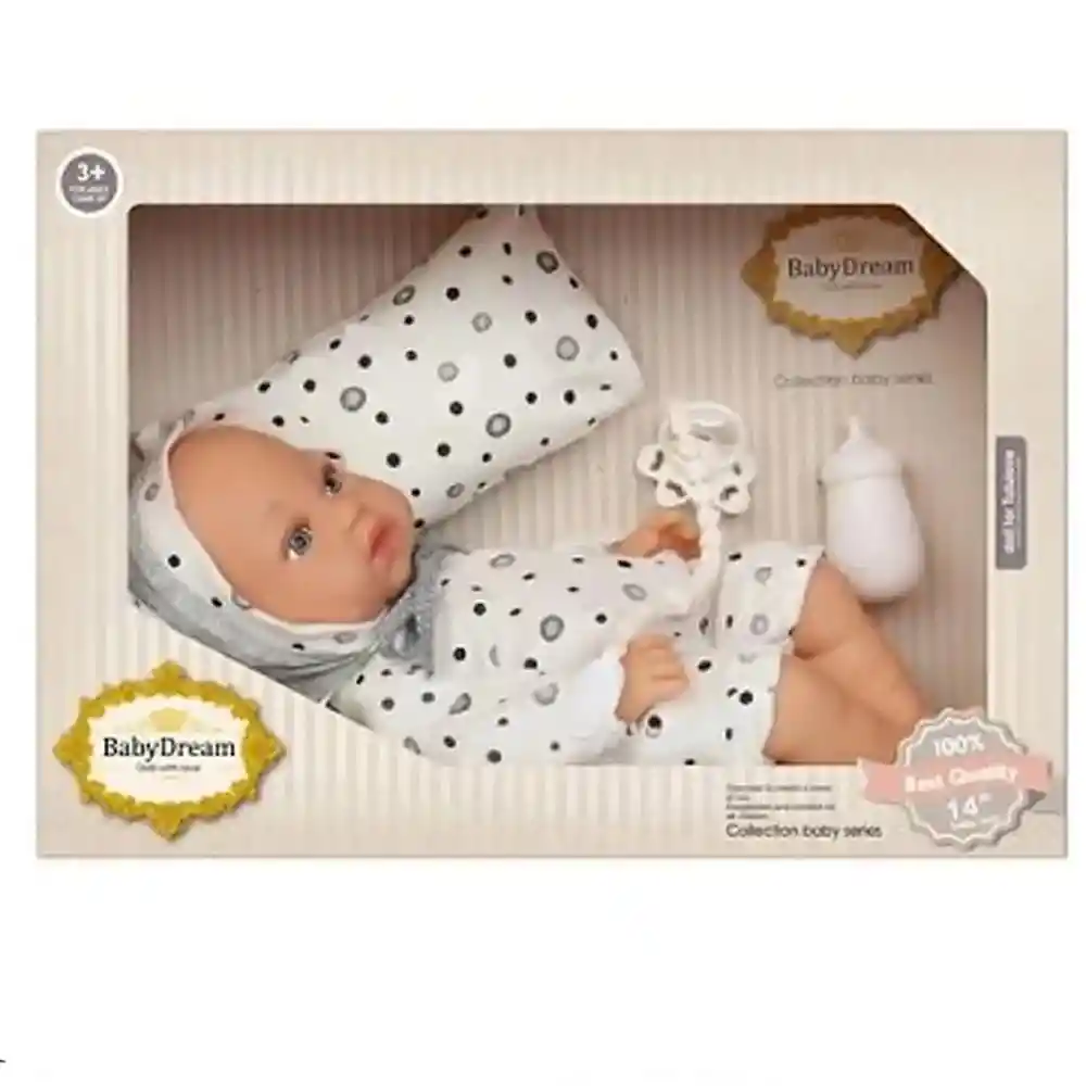 Muñeca Bebe Coleccion Realista Diversion Juguete Accesorios 9550 Muñeca Bebé Colección 5D. Los más peques no querrán separarse de ésta adorable muñeca bebé. Tiene sus ojitos cerrados porque duerme plácidamente, pareciendo así, un bebé de verdad. Viste un bonito pelele y gorrito. Podrás acurrucarlo junto a ti y jugar con sus accesorios. Hay hasta 6 modelos diferentes de muñecas para coleccionar. Edad recomendada a partir de los 18 meses.