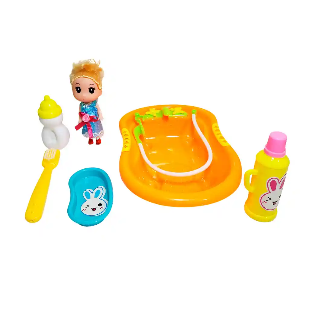 ¡Prepara las burbujas y el chapoteo para la hora del baño más adorable con nuestro encantador Set de Baño para Bebé! Este dulce juego es perfecto para que los pequeños asuman el tierno rol de cuidadores, incluyendo una simpática muñequita lista para su baño. El set viene con todo lo necesario para una rutina de cuidado completa: una colorida bañera con su propia ducha, un biberón para después del baño, un cepillo de dientes y otros accesorios súper lindos. Es la manera ideal de fomentar el juego de roles, la empatía y enseñar sobre las rutivas diarias de una forma dulce y entretenida, garantizando horas de juego imaginativo y tierno. Ficha Técnica: Material : Plástico ABS Edad Apta + 3 años Dimensiones del empaque : 29 cm x 18 cm Referencia: 135D-3 Certificado de conformidad: E5-0359-2021 ** _Para defectos de fábrica o retractos: \_Por favor revise el producto apenas lo reciba y antes de usarlo. No aplican ley de retracto o defectos de fábrica luego de usar el producto. Se manejan máximo 5 días para reportar defectos de fábrica (por ejemplo, producto funciona mal, piezas faltantes, rotas, etc). Para hacer efectiva la devolución el producto debe devolverse con el empaque original, el cual debe estar en buen estado, incluir todos los documentos y las partes completas y sin daños.