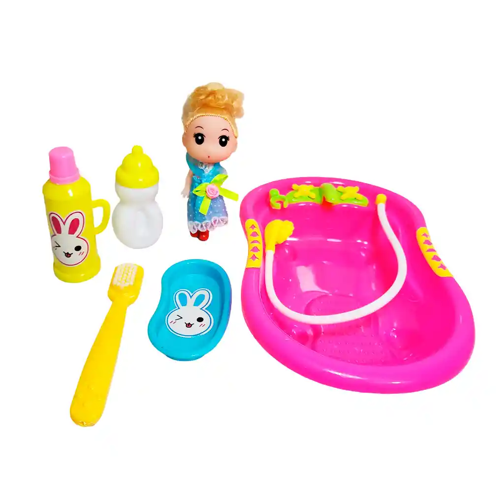 ¡Prepara las burbujas y el chapoteo para la hora del baño más adorable con nuestro encantador Set de Baño para Bebé! Este dulce juego es perfecto para que los pequeños asuman el tierno rol de cuidadores, incluyendo una simpática muñequita lista para su baño. El set viene con todo lo necesario para una rutina de cuidado completa: una colorida bañera con su propia ducha, un biberón para después del baño, un cepillo de dientes y otros accesorios súper lindos. Es la manera ideal de fomentar el juego de roles, la empatía y enseñar sobre las rutivas diarias de una forma dulce y entretenida, garantizando horas de juego imaginativo y tierno. Ficha Técnica: Material : Plástico ABS Edad Apta + 3 años Dimensiones del empaque : 29 cm x 18 cm Referencia: 135D-3 Certificado de conformidad: E5-0359-2021 ** _Para defectos de fábrica o retractos: \_Por favor revise el producto apenas lo reciba y antes de usarlo. No aplican ley de retracto o defectos de fábrica luego de usar el producto. Se manejan máximo 5 días para reportar defectos de fábrica (por ejemplo, producto funciona mal, piezas faltantes, rotas, etc). Para hacer efectiva la devolución el producto debe devolverse con el empaque original, el cual debe estar en buen estado, incluir todos los documentos y las partes completas y sin daños.