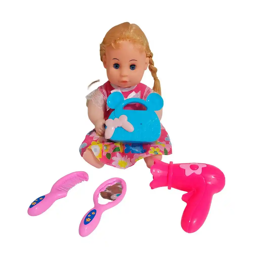 ¡Haz feliz a tu pequeño con la encantadora muñeca "My Baby" de Smart Babys! Vestida con un delicado vestido rosa decorado con flores y un lazo, esta adorable muñeca invita al juego imaginativo y al cuidado afectivo. El set incluye divertidos accesorios como un secador de juguete, peine, espejo y una bolsita con mariposa azul, ideales para que los niños desarrollen habilidades motoras finas mientras peinan y cuidan a su nueva amiga. Es el regalo perfecto para fomentar la creatividad y el juego simbólico en casa. ¡Una compañera de juegos que no puede faltar en su infancia! Ficha Técnica: Material: Plástico ABS Dimensiones : 27 cm x 12 cm x 7 cm Apto para bebes + 3 Años Certificado de conformidad: E5-0359-2021 Referencia: JM1293 ** _Para defectos de fábrica o retractos: \_Por favor revise el producto apenas lo reciba y antes de usarlo. No aplican ley de retracto o defectos de fábrica luego de usar el producto. Se manejan máximo 5 días para reportar defectos de fábrica (por ejemplo, producto funciona mal, piezas faltantes, rotas, etc). Para hacer efectiva la devolución el producto debe devolverse con el empaque original, el cual debe estar en buen estado, incluir todos los documentos y las partes completas y sin daños.
