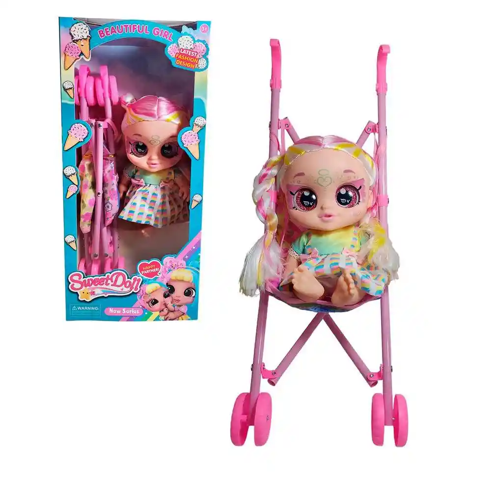 Prepárate para los paseos más mágicos con este adorable set "Sweet Doll", la "Happy Partner!" perfecta para tu pequeña. Este completo paquete "Beautiful Girl" incluye una fantástica muñeca de grandes ojos brillantes, que combina un look con un vestido Para llevar la diversión a todas partes, el set viene con un práctico cochecito. Es el regalo ideal para fomentar el juego de roles, la moda y las historias fantásticas. Ficha Técnica: Dimensiones : 28 cm x 11 cm Material: Plástico ABS Edad recomendada + 3 Años Referencia: JM-1315 6048B Certificado de conformidad: CS-LCO-13233-2021S2/432 ** _Para defectos de fábrica o retractos: \_Por favor revise el producto apenas lo reciba y antes de usarlo. No aplican ley de retracto o defectos de fábrica luego de usar el producto. Se manejan máximo 5 días para reportar defectos de fábrica (por ejemplo, producto funciona mal, piezas faltantes, rotas, etc). Para hacer efectiva la devolución el producto debe devolverse con el empaque original, el cual debe estar en buen estado, incluir todos los documentos y las partes completas y sin daños.
