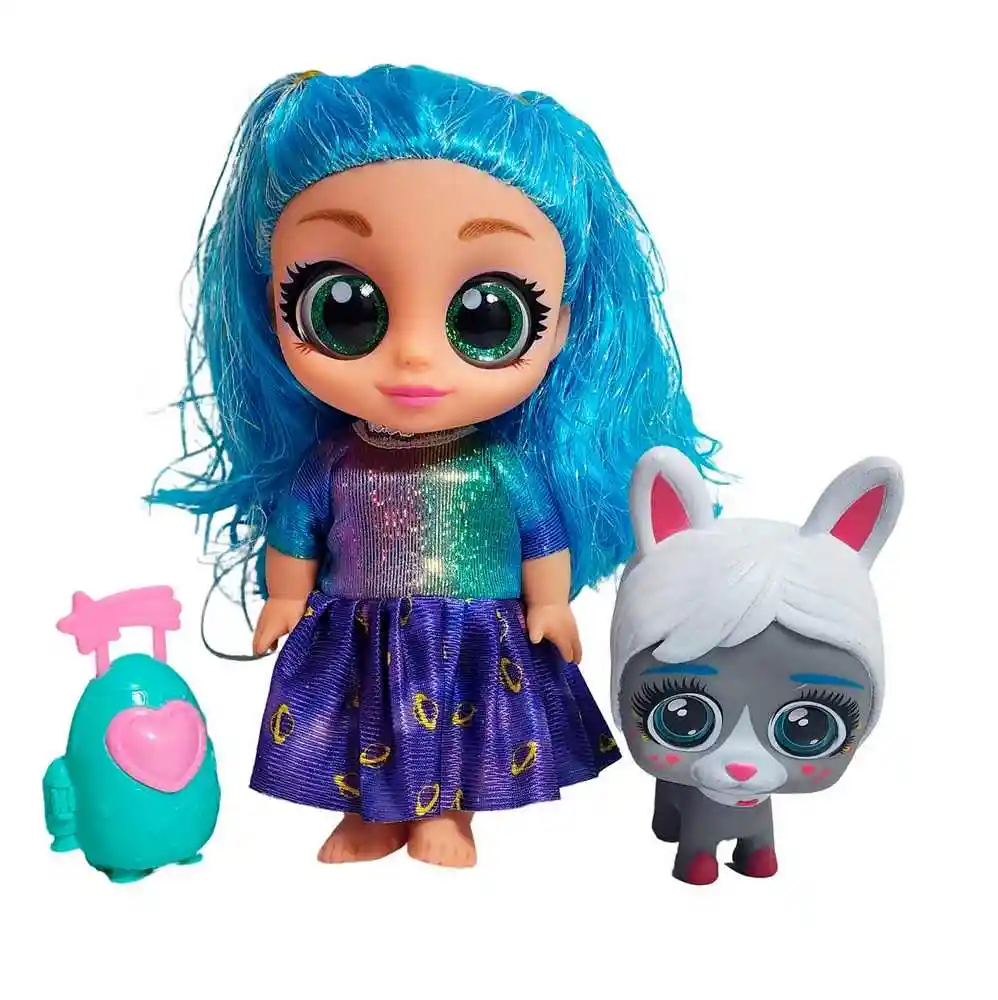 ¡Descubre la "Combinación Perfecta" para una "Infancia Feliz" con este adorable set de "Doll Baby"! Bienvenida a la "Hora Feliz" ("Welcome to Happy Hour") con esta encantadora muñeca de enormes ojos verdes y un vibrante cabello azul, vestida con un atuendo mágico de falda morada con lunas y un top iridiscente. Pero la diversión no viene sola: la acompaña su inseparable mascota, un tierno animalito gris con un gorro de conejo blanco y ojos a juego. Para completar la aventura, el set incluye una práctica maleta de viaje turquesa con un corazón rosa, lista para llevar la amistad a cualquier parte. Es el regalo ideal para mayores de 3 años, inspirando horas de juego imaginativo y las más dulces historias. Ficha Técnica: Dimensiones : 23 cm x 10 cm Material: Plástico ABS Edad recomendada + 3 Años Referencia: JM-1333 307D1 Certificado de conformidad: CS-LCO-13233-2021S2/432 ** _Para defectos de fábrica o retractos: \_Por favor revise el producto apenas lo reciba y antes de usarlo. No aplican ley de retracto o defectos de fábrica luego de usar el producto. Se manejan máximo 5 días para reportar defectos de fábrica (por ejemplo, producto funciona mal, piezas faltantes, rotas, etc). Para hacer efectiva la devolución el producto debe devolverse con el empaque original, el cual debe estar en buen estado, incluir todos los documentos y las partes completas y sin daños.