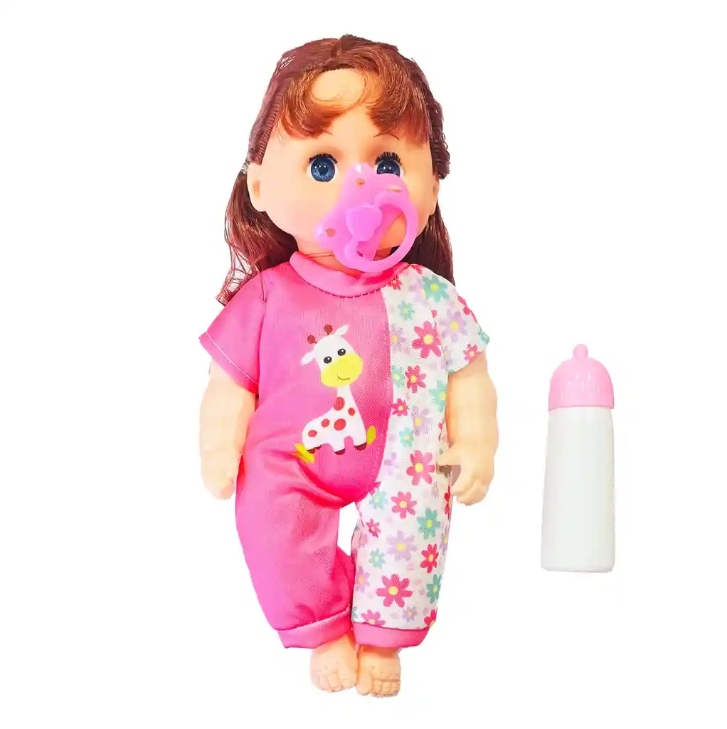 Te presentamos una encantadora muñeca bebé vestida con un tierno pijama de jirafa, lista para brindar horas de diversión y juego. Este adorable bebé viene acompañado de un tetero y un chupo, perfectos para que las niñas disfruten cuidándola como si fuera real. Con su suave atuendo y detalles dulces, esta muñeca inspira el juego imaginativo, desarrollando habilidades de cuidado y afecto mientras las pequeñas la alimentan, la acurrucan y la consuelan. ¡Un juguete perfecto para crear momentos llenos de amor y diversión! Ficha Técnica: Material : Plástico ABS no toxico - Tela de Peluche Dimensiones: 28 cm x 13 cm Edad recomendada: + 3 años Certificado de conformidad: CS-LCO-13233-2021S2/432 Referencia: 9099A MODELO 9912-Q5 ** _Para defectos de fábrica o retractos: \_Por favor revise el producto apenas lo reciba y antes de usarlo. No aplican ley de retracto o defectos de fábrica luego de usar el producto. Se manejan máximo 5 días para reportar defectos de fábrica (por ejemplo, producto funciona mal, piezas faltantes, rotas, etc). Para hacer efectiva la devolución el producto debe devolverse con el empaque original, el cual debe estar en buen estado, incluir todos los documentos y las partes completas y sin daños.