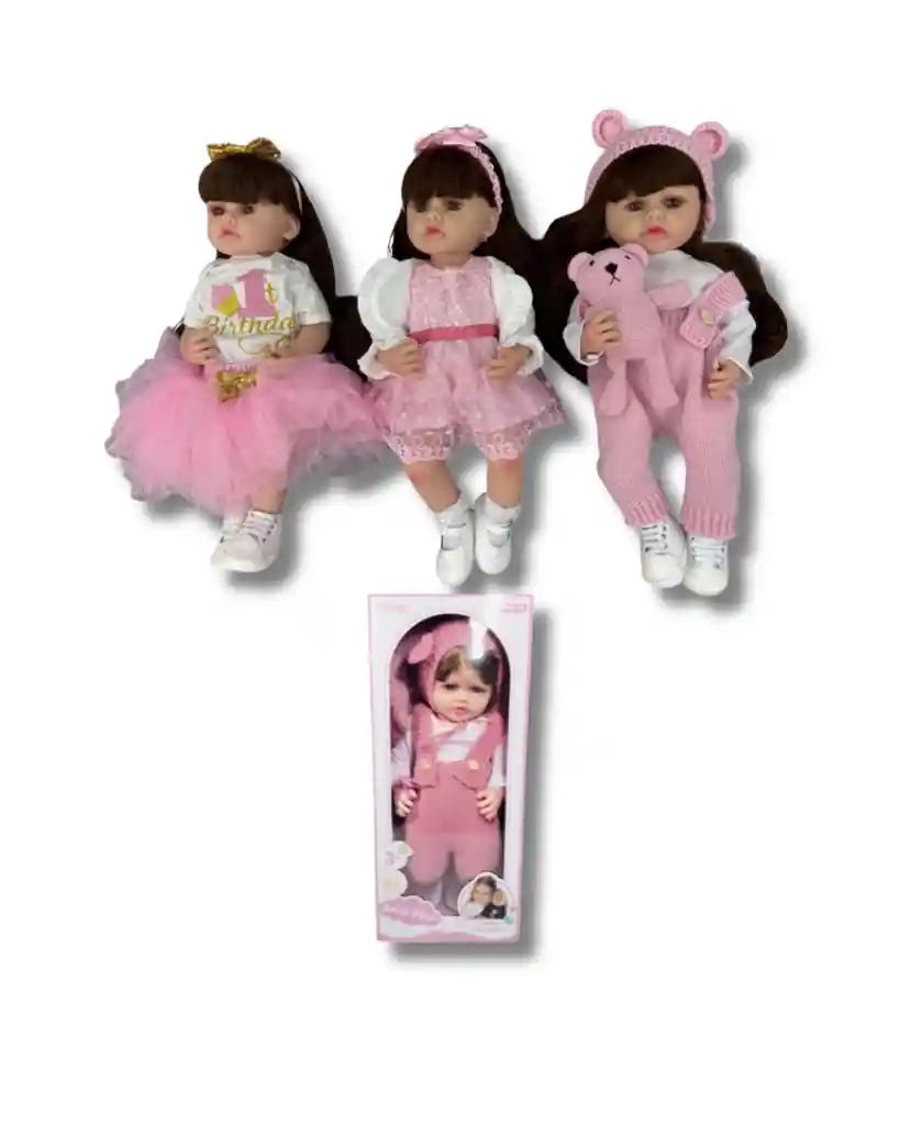 Muñeca Bebé Real Aostoyo con vestido rosa y chupón. ¡Súper realista y perfecta para regalar o coleccionar! ✨ Características principales: Expresión realista y detalles delicados. Incluye vestido de encaje rosa, chaquetica blanca y diadema con lazo. Viene con su propio chupón (tetero/chuponcito). Ideal para juegos de cuidado y rol, fomentando la imaginación.