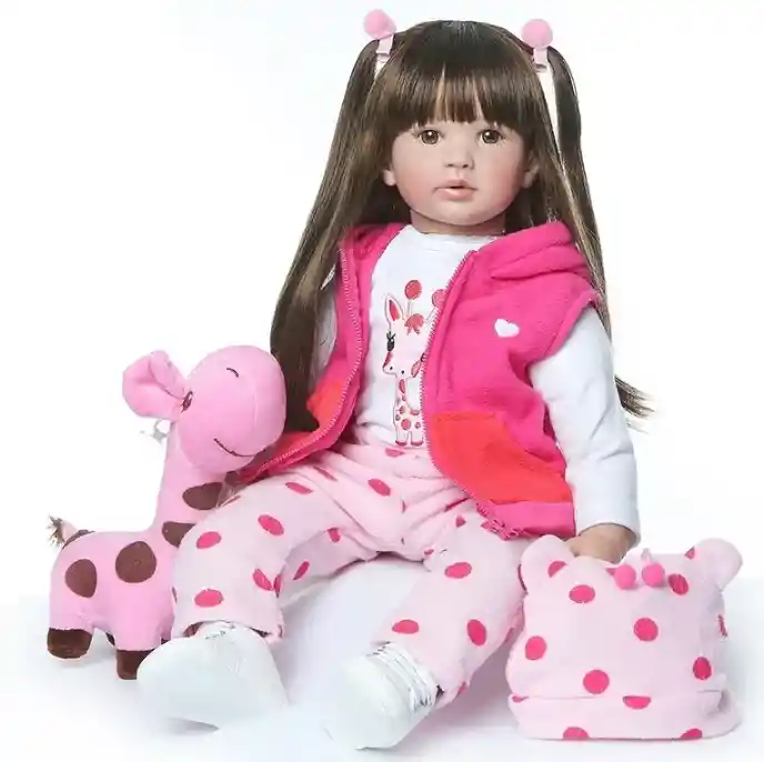 Muñeca bebé es una muñeca realista que acompañará a los niños a crecer y mantenerlos alejados de la soledad. Y la capacidad del niño de cuidar a sus amigos se mejorará usando ropa para la muñeca. La muñeca es miembro de la familia. Descubre hoy y atesora tu muñeca realista durante los próximos años. las extremidades silicona, el torso rellena de algodón siliconado Acerca de esta muñeca: Peso: El peso neto de la muñeca está alrededor1,7KG, Empaquetado alrededor de 2KG La cabeza de la muñeca, los brazos de vinilo 3/4 y las patas de vinilo 3/4, se ajustan a los requisitos de seguridad de ASTM F963 y EN71 para edades de 3 años en adelante, que es seguro para tus hijos. El bebé renacido tiene un aspecto realista. Ojos marrones aplicados a mano, hermoso pelo marrón hecho a mano. Los brazos y las piernas se pueden mover y poseer. La expresión de aspecto real hará que tus hijos se sientan como jugar con amigos.