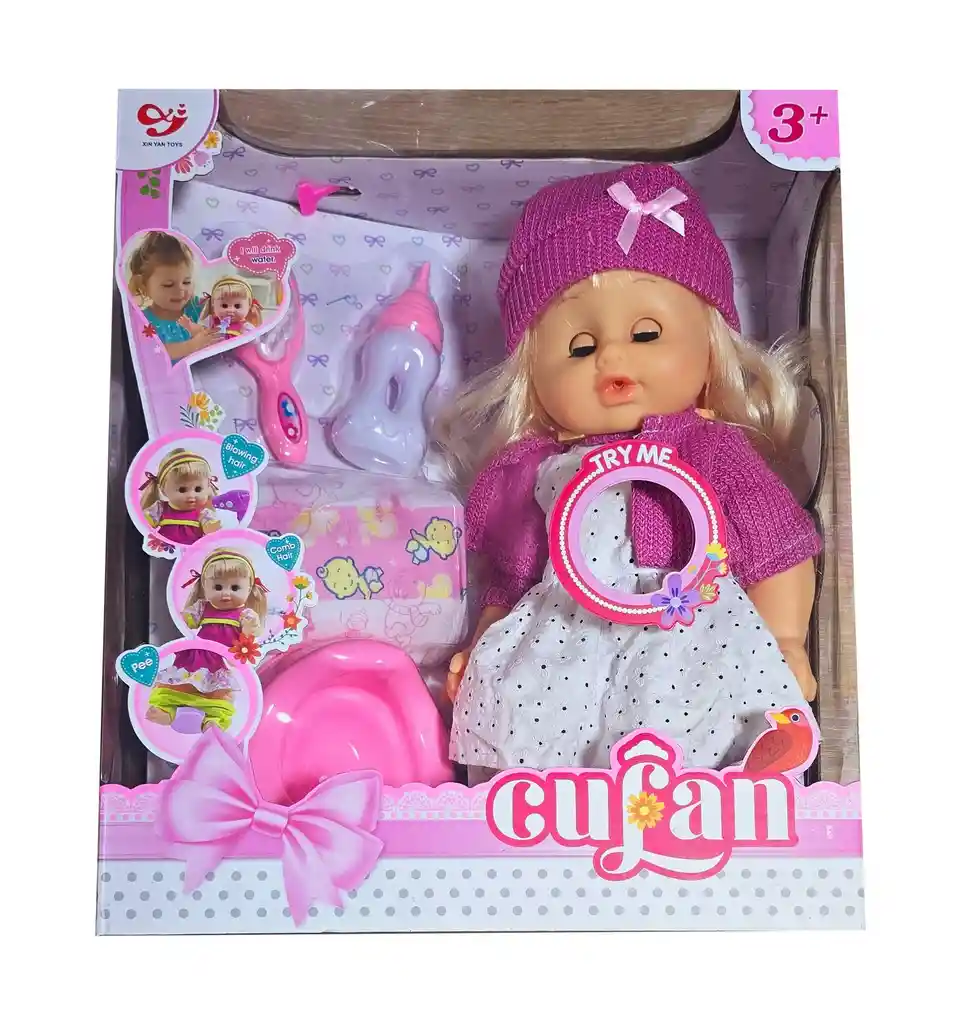Esta preciosa muñeca bebé luce un encantador vestido de flores con detalles pulidos, complementado por un hermoso saquito que realza su dulzura. El set incluye un tetero para alimentarla, una bacinilla para el momento del baño, un peine para peinar su delicado cabello, y un pañal para completar su cuidado. Además, la muñeca cuenta con un sistema interactivo que le permite orinar después de beber de su tetero, añadiendo realismo y diversión al juego. Este juguete es ideal para fomentar el juego imaginativo, la responsabilidad y el cariño, brindando horas de entretenimiento a los pequeños cuidadores. /// Nota: Algunos colores del vestido y el cabello de la muñeca pueden variar ligeramente /// Ficha Técnica: Dimensiones de la muñeca: 32 cm x 15 cm Dimensiones del empaque: 35 cm x 30 cm x 12 cm Material: Plástico ABS no toxico Edad recomendada + 3 Años Certificado de conformidad: CS-LCO-13233-2021S2/432 Referencia: MU1022 ** _Para defectos de fábrica o retractos: \_Por favor revise el producto apenas lo reciba y antes de usarlo. No aplican ley de retracto o defectos de fábrica luego de usar el producto. Se manejan máximo 5 días para reportar defectos de fábrica (por ejemplo, producto funciona mal, piezas faltantes, rotas, etc). Para hacer efectiva la devolución el producto debe devolverse con el empaque original, el cual debe estar en buen estado, incluir todos los documentos y las partes completas y sin daños.