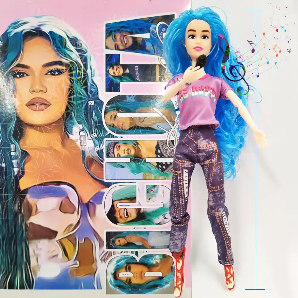 MUÑECA CAROL G PELO AZUL Increíble muñeca de Carol G, con la que sorprenderas a tu pequeña y cantara junto a uno de sus grandes éxitos musicales. Solo oprime el botón en forma de corazón que tiene la muñeca en el pecho, asegúrate primero de quitar el separador de las pilas que esta en su espalda. Y listo disfruta y canta con la Bichota. También puedes jugar a cambiarle de atuendo ya que se incluye un vestuario adicional con zapatos para que parezca que está en un verdadero concierto. Muñeca Articulada. NOTA: Los modelos de los vestidos pueden variar se envía una muñeca aleatoriamente. ACCESORIOS: Un traje completo, Unos zapatos adicionales un micrófono que puedes pegar de su mano y dos láminas de imágenes de la cantante que puedes cortar y coleccionar. Medidas Muñeca: 30 cm de Alto x 7 cm de Largo sin extender sus brazos. Material: Plástico Modelo: Cabello Azul Los juguetes siempre han desempeñado un papel importante en la vida de los niños, siempre considerando los gustos y deseos de los más pequeños de la casa y no tan pequeños, procurando dar la mejor de las sorpresas y ganarse esa sonrisa incomparable que los llena de felicidad. Juguetes, cuentos, y cualquier producto orientado a la satisfacción y desarrollo de los niños. Diversión, entretenimiento y aprendizaje