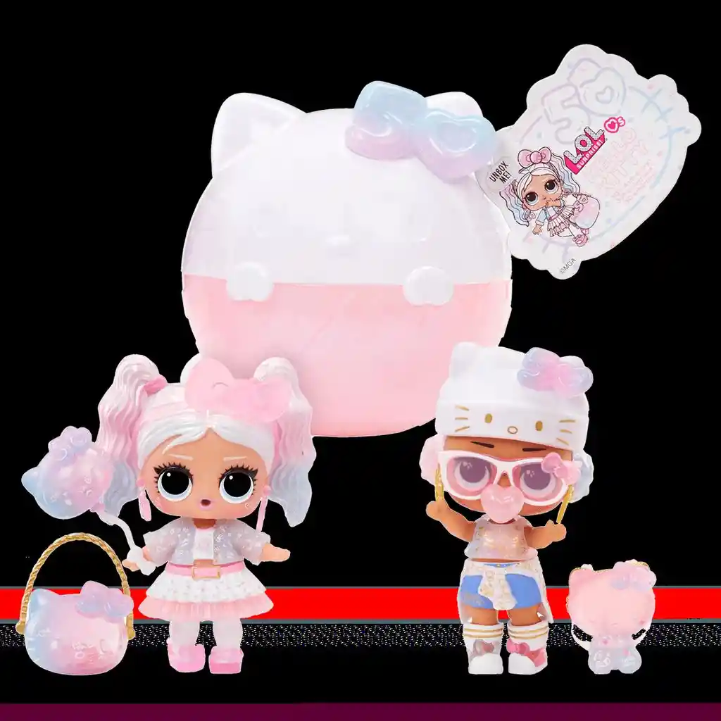 MUÑECA COLECCIONABLE LOL HELLO KITTY SORPRESA, Incluye: 1 muñeca LOL - 1 pack sorpresa de una o dos figuras diseño Hello Kitty - 1 guía de colección Celebra los 50 años de Hello Kitty con la exclusiva muñeca LOL Surprise Hello Kitty - Miss Pearly! Descubre 7 sorpresas únicas en tonos pastel, perfectas para personalizar y jugar. Con accesorios intercambiables, esta muñeca ofrece infinitas posibilidades de diversión. Fabricada con material rígido resistente a impactos y una decoración detallada de larga duración, Miss Pearly es el regalo ideal para coleccionistas y fanáticos de Hello Kitty. Un tesoro para cualquier colección Edad: 3 años en adelante.