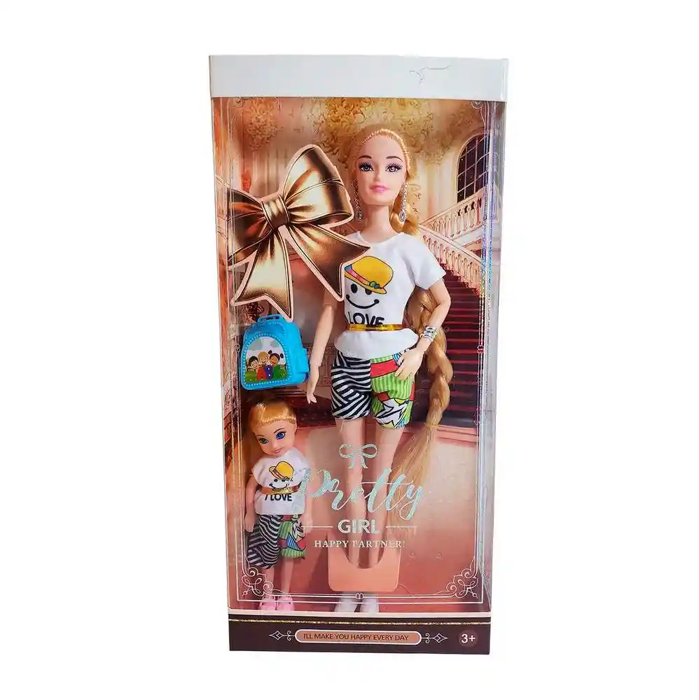 Prepárate para el doble de diversión con este encantador set "Pretty Girl Happy Partner!". La protagonista es una hermosa muñeca fashionista con una larguísima trenza , luciendo un atuendo casual y moderno de camiseta "LOVE" Pero la aventura es compartida, ya que viene acompañada de su adorable compañerita, una muñeca más pequeña vestida con un conjunto idéntico, ¡listas para ser las mejores amigas! El set, que también incluye una práctica mochila azul para la muñeca principal, es el regalo perfecto para niñas mayores de 3 años, inspirando horas de juego imaginativo y dulces historias de amistad y estilo. Ficha Técnica: Dimensiones : 28 cm x 7 cm Material: Plástico ABS Edad recomendada + 3 Años Referencia: 633A8 947LS-1 Certificado de conformidad: CS-LCO-13233-2021S2/432 ** _Para defectos de fábrica o retractos: \_Por favor revise el producto apenas lo reciba y antes de usarlo. No aplican ley de retracto o defectos de fábrica luego de usar el producto. Se manejan máximo 5 días para reportar defectos de fábrica (por ejemplo, producto funciona mal, piezas faltantes, rotas, etc). Para hacer efectiva la devolución el producto debe devolverse con el empaque original, el cual debe estar en buen estado, incluir todos los documentos y las partes completas y sin daños.