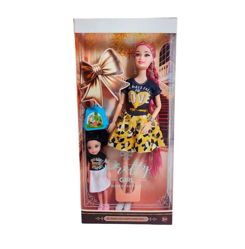 Prepárate para el doble de diversión con este encantador set "Pretty Girl Happy Partner!". La protagonista es una hermosa muñeca fashionista con una larguísima trenza , luciendo un atuendo casual y moderno de camiseta "LOVE" Pero la aventura es compartida, ya que viene acompañada de su adorable compañerita, una muñeca más pequeña vestida con un conjunto idéntico, ¡listas para ser las mejores amigas! El set, que también incluye una práctica mochila azul para la muñeca principal, es el regalo perfecto para niñas mayores de 3 años, inspirando horas de juego imaginativo y dulces historias de amistad y estilo. Ficha Técnica: Dimensiones : 28 cm x 7 cm Material: Plástico ABS Edad recomendada + 3 Años Referencia: 633A8 947LS-1 Certificado de conformidad: CS-LCO-13233-2021S2/432 ** _Para defectos de fábrica o retractos: \_Por favor revise el producto apenas lo reciba y antes de usarlo. No aplican ley de retracto o defectos de fábrica luego de usar el producto. Se manejan máximo 5 días para reportar defectos de fábrica (por ejemplo, producto funciona mal, piezas faltantes, rotas, etc). Para hacer efectiva la devolución el producto debe devolverse con el empaque original, el cual debe estar en buen estado, incluir todos los documentos y las partes completas y sin daños.