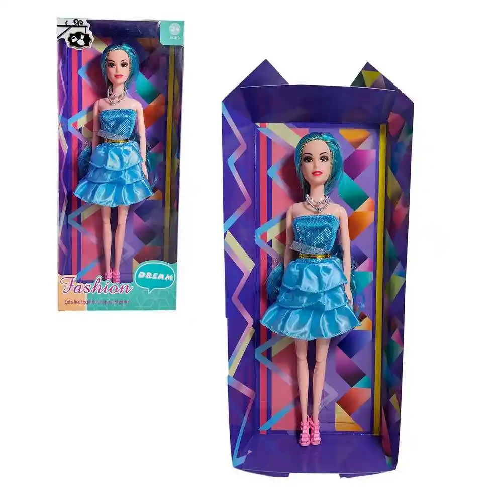 Inspira un mundo de glamour y sueños con esta deslumbrante muñeca "Fashion Dream" de la colección "Let's live together Happy together". Perfecta para niñas mayores de 3 años, esta muñeca brilla con luz propia gracias a su vibrante cabello y su espectacular vestido de fiesta a juego; el atuendo presenta un corpiño strapless brillante tipo lentejuela y una elegante falda de satén con múltiples volados. Completa con un collar plateado y tacones a juego, esta fashionista está lista para cualquier evento especial, fomentando horas de juego imaginativo y desfiles de moda. Ficha Técnica: Dimensiones : 28 cm x 7 cm Material: Plástico ABS Edad recomendada + 3 Años Referencia: JM-1332 ML-322C20 Certificado de conformidad: CS-LCO-13233-2021S2/432 ** _Para defectos de fábrica o retractos: \_Por favor revise el producto apenas lo reciba y antes de usarlo. No aplican ley de retracto o defectos de fábrica luego de usar el producto. Se manejan máximo 5 días para reportar defectos de fábrica (por ejemplo, producto funciona mal, piezas faltantes, rotas, etc). Para hacer efectiva la devolución el producto debe devolverse con el empaque original, el cual debe estar en buen estado, incluir todos los documentos y las partes completas y sin daños.
